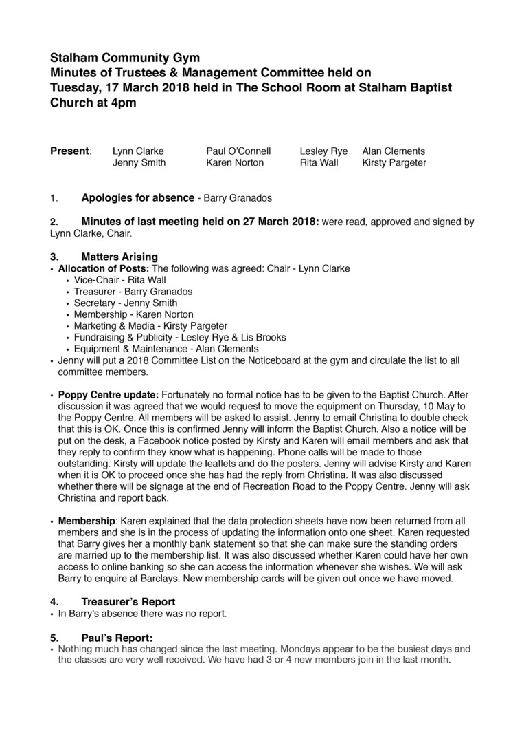 Minutes of Trustees & Management Committee held on