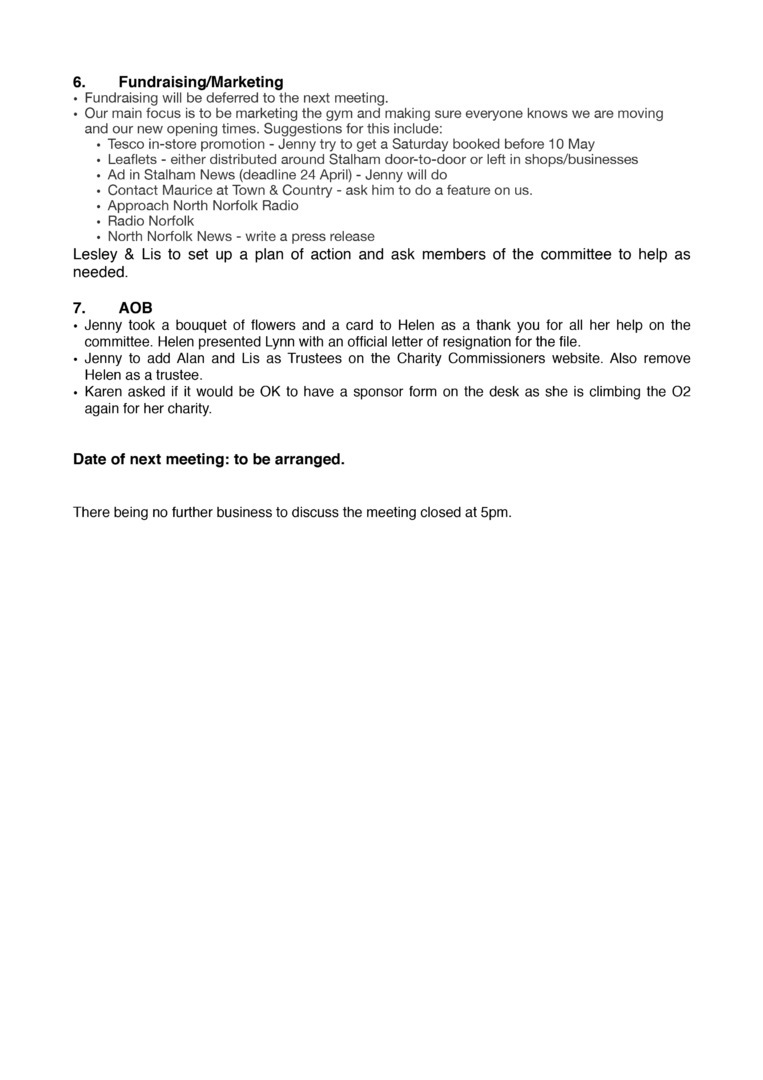 the one the Happing Partnership used to do. Jenny will contact the clerk with the gym’s details for inclusion.